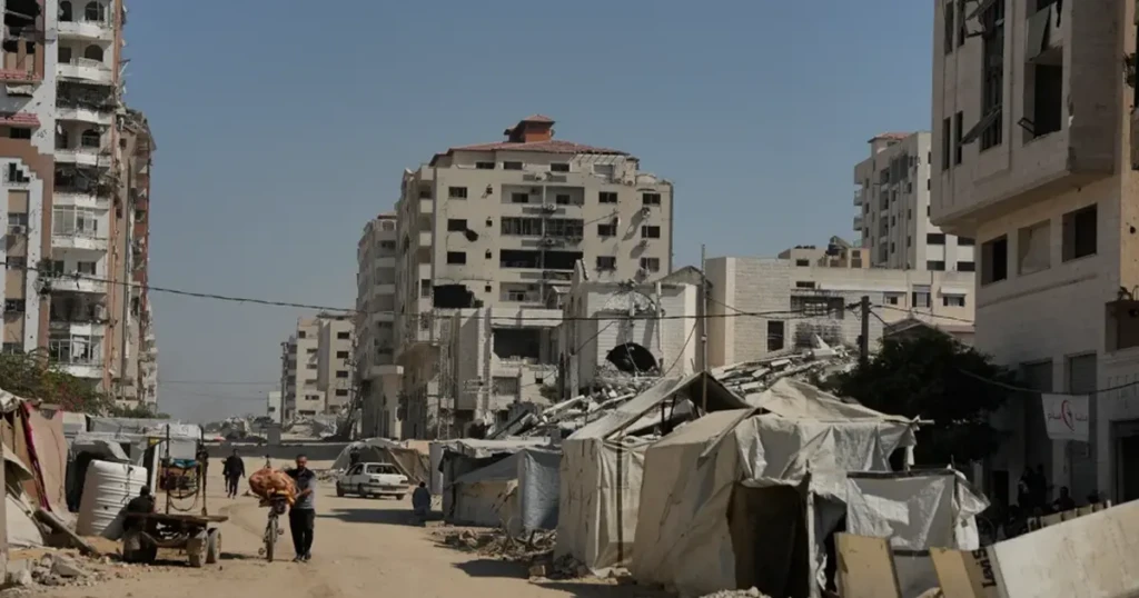 Las condiciones de vida en Gaza siguen siendo terribles. Tras ser desplazados forzosamente en repetidas ocasiones, muchos palestinos aún viven en tiendas de campaña improvisadas, sin acceso a agua corriente ni electricidad, junto a montones de basura y aguas residuales desbordadas.