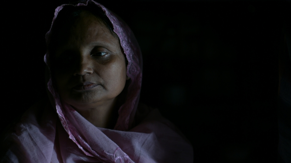 Después de que salimos de la casa … no pudimos salir fácilmente de nuestra aldea porque en todas partes vimos a la gente del gobierno con armas. Recorrimos varios kilómetros a través de las montañas, contratando hombres para que llevaran a Rukia. Finalmente llegamos a la costa frente a Bangladesh a altas horas de la noche. Cuando apareció un barco, había entre 20 y 30 personas más en la orilla con nosotros. El capitán nos llevó a todos de manera segura a Bangladesh. Cuando llegamos, la policía fronteriza de Bangladesh estaba esperando. Nos ayudaron mucho, nos dieron la bienvenida y nos ofrecieron comida, agua y galletas. Por la mañana, alquilaron un autobús y nos llevaron al campamento de Kutupalong.