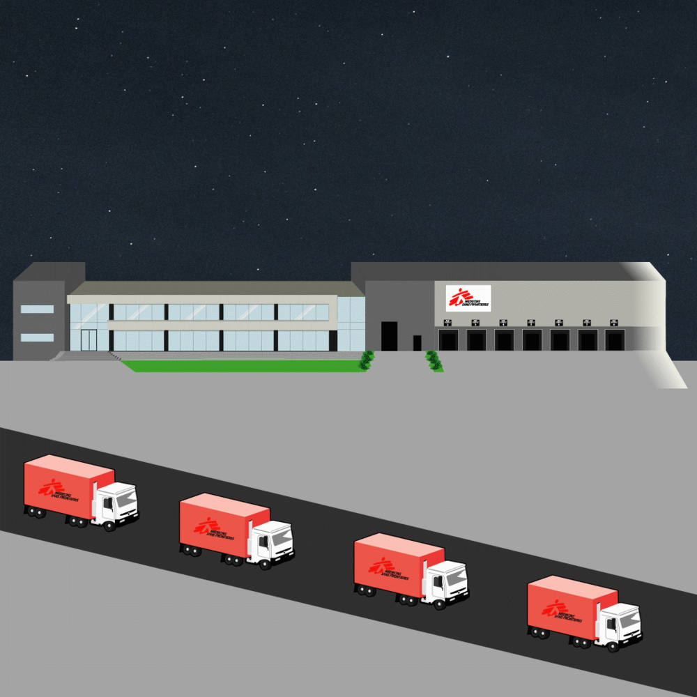 5. Las vacunas se llevan a las tiendas centrales de MSF, que pueden ser desde un almacén hasta un pequeño cobertizo. Las vacunas se colocan en una zona refrigerada o en un refrigerador grande que funciona con un generador eléctrico.