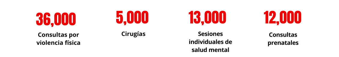 - Hospital Al-Aqsa, Deir Al-Balah, brindamos cirugía traumatológica, cuidado avanzado de heridas, cuidado postoperatorio de heridas, fisioterapia, promoción de la salud y apoyo a la salud mental.