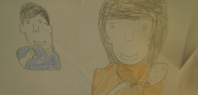Hace poco tuvimos a bordo un niño de 10 años que viajaba con sus tres hermanos, todos ellos lo suficientemente pequeños para llevar todavía pañales. Mantenía a su equipo unido, se aseguraba de que estuvieran secos y que permanecían alejados de los problemas, pero la responsabilidad estaba, sin duda, aplastándolo. Nos contó que había cuidado solo de sus hermanos durante más de dos meses. Parecía un poco más feliz cuando le dimos algunos lápices de colores y papel y pintó el dibujo que acompaña este texto.