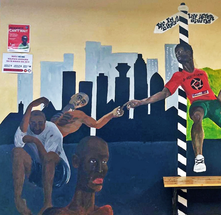 “El mural en la pared de la clínica, aquí en Kiambu, muestra dos mundos muy diferentes.