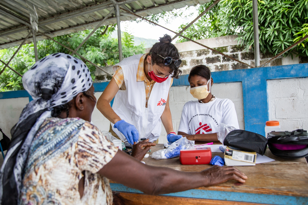 “Pocos días después del terremoto, nos enteramos de que personas brindaban ayuda a las víctimas en otras áreas”, dijo Cadet Rameau, de 69 años, de Fond Palmiste, Baradères. “Como las carreteras no son buenas, al final no vino nadie [más]. MSF es la primera institución que vino aquí para brindarnos atención gratuitamente y sin hacernos pagar los medicamentos. De lo contrario, tendríamos que ir al centro de la ciudad de Baradères. El transporte para llegar allí es caro y hay que pagar los servicios del hospital”.