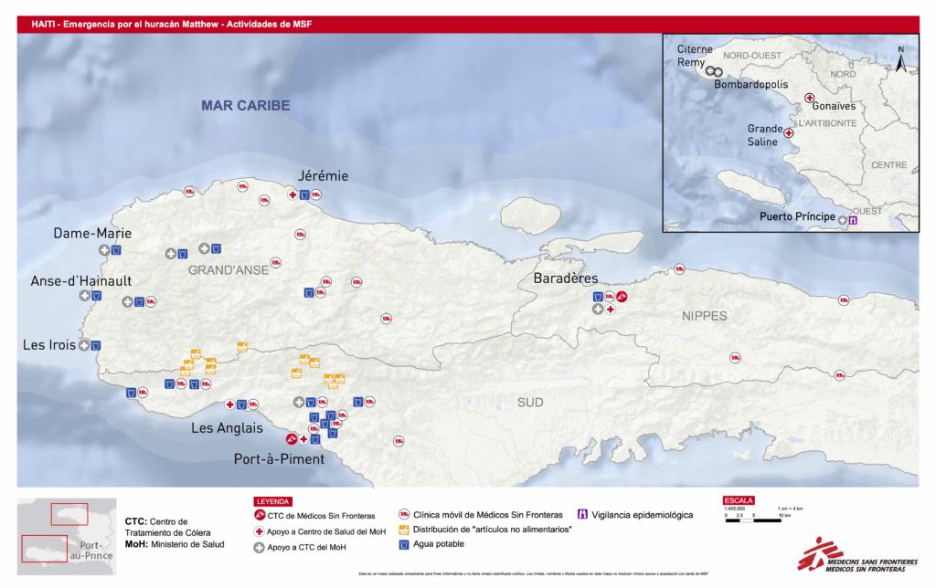 La organización médico-humanitaria internacional Médicos Sin Fronteras (MSF) está consternada por el deterioro del estado de salud de niños, mujeres y hombres en las provincias de Sud, Grande Anse y Nippes afectadas por el huracán.