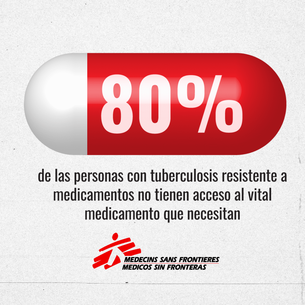 MSF es el mayor proveedor no gubernamental de tratamiento contra la TB en todo el mundo y ha estado involucrada en el cuidado de la TB durante 30 años, a menudo trabajando en colaboración con las autoridades sanitarias nacionales para tratar a las personas en una amplia variedad de contextos, incluyendo zonas de conflicto crónico, barrios marginales, prisiones, campos de refugiados y zonas rurales. A septiembre de 2018, en los proyectos de MSF en 14 países, más de 2,000 personas han sido tratadas con los medicamentos más nuevos, incluyendo a 633 personas tratadas con delamanida, el único otro medicamento nuevo contra la tuberculosis desarrollado en más de 40 años. 1,530 más fueron tratadas con bedaquilina y 227 con una combinación de ambos medicamentos. Los datos sobre la seguridad y eficacia sobre el uso de bedaquilina en los proyectos de MSF siguen contribuyendo a la base de evidencia que informa sobre el uso de la bedaquilina en el tratamiento de la TB resistente a medicamentos. Además, MSF está realizando dos ensayos clínicos de fase II / III que incluyen el uso de bedaquilina: endTB y TB PRACTECAL.