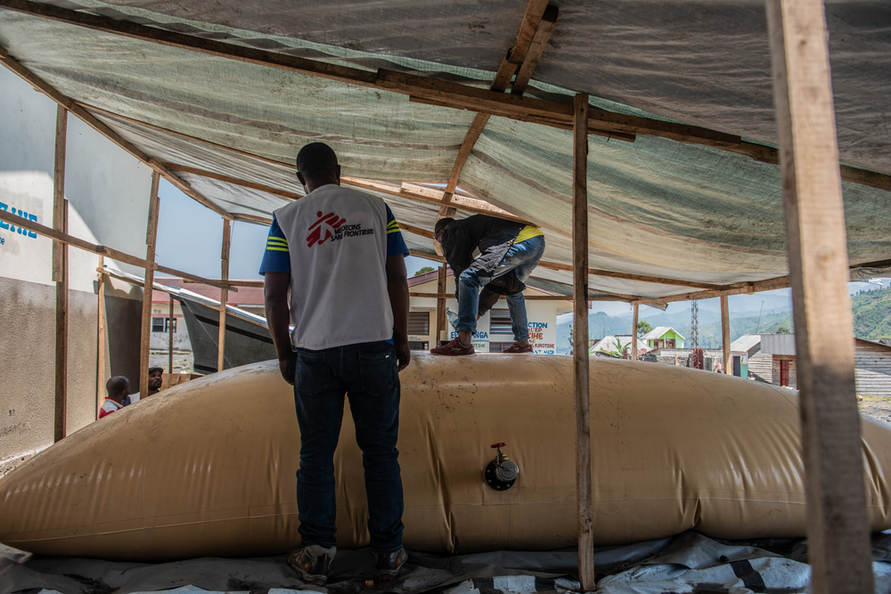 Los equipos de MSF están respondiendo en varios lugares de las provincias de Kivu Norte y Sur, incluida la zona de salud de Kirotshe, Rutshuru, Sake y en los alrededores de Goma. Estamos mejorando las instalaciones de agua y saneamiento en los lugares donde se encuentran asentadas las personas desplazadas, construyendo letrinas, puntos de lavado de manos y duchas.