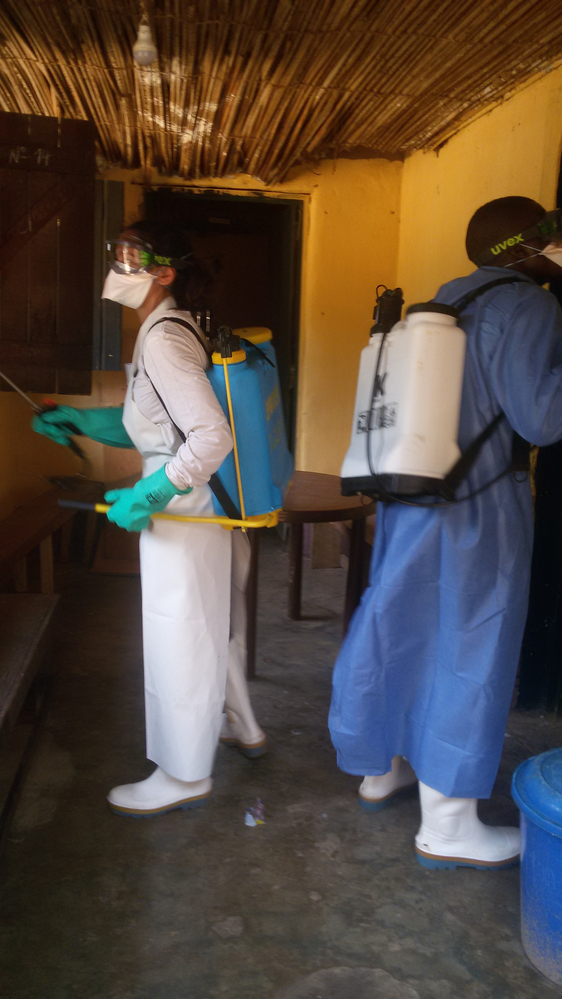 Me llevó una hora, sudando dentro de mi traje de protección, rociar la casa y desinfectar el cuerpo de la mujer de una manera respetuosa, ante los ojos de su esposo, que también llevaba protección. Luego recogí toda la ropa, sábanas y otros materiales posiblemente contaminados en una bolsa que rocié con cloro. Eso, a su vez, se colocó en otra bolsa, se roció de nuevo y se colocó en otra bolsa. Luego fue llevado de regreso a nuestro CTE en Iboko y quemado. Para evitar la propagación de la enfermedad, tomamos la mayor cantidad de precauciones.