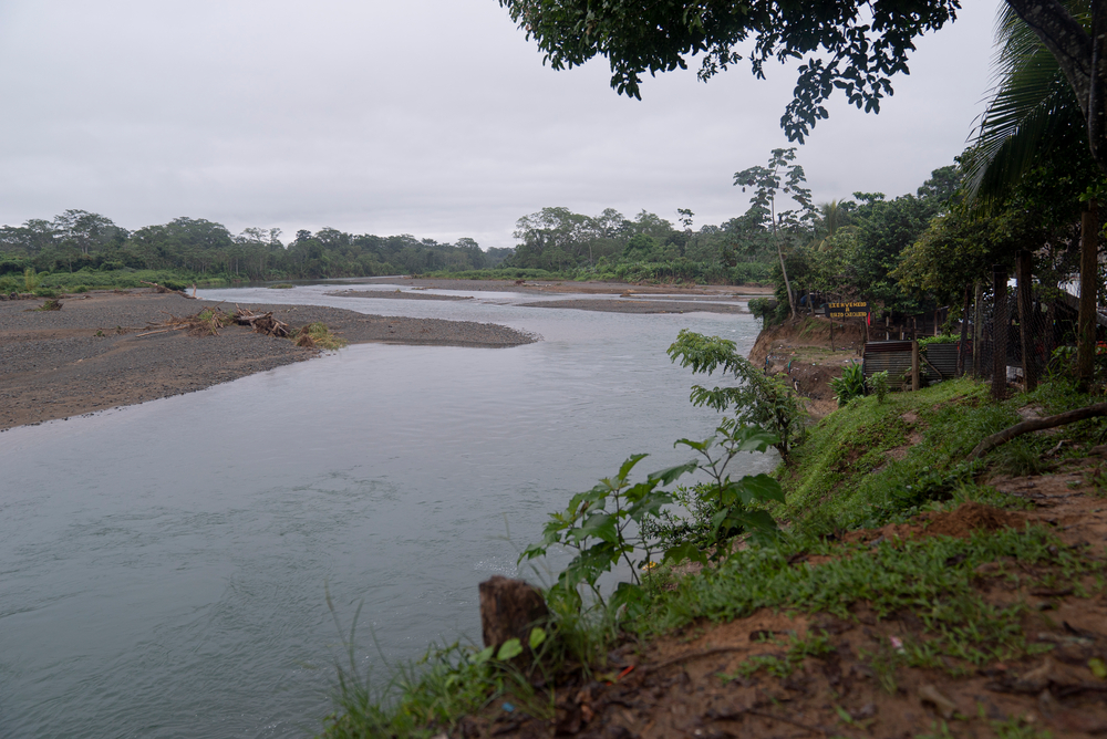 El río Turquesa a su paso por el pueblo de Bajo Chiquito (comarca Emberá-Wounaan), en Panamá. Las personas migrantes que cruzan el peligroso Tapón del Darién, de Colombia a Panamá, llegan a Bajo Chiquito por decenas y centenares de forma diaria después de haber superado la selva. Llegan caminando penosamente, o en ocasiones pagando un pasaje para el último tramo de la ruta en piraguas capitaneadas por vecinos, que también tienen que realizar rescates de personas que ya no pueden seguir avanzando por la selva, a 3 o 4 días todavía de la población y cuyas vidas corren peligro.