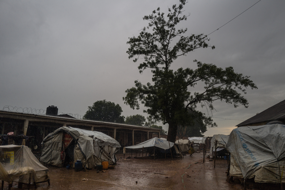 “Cuando cae una tormenta, el agua entra por todos lados. La manta es vieja y tiene agujeros, y el suelo solo es de tierra, por lo que el interior del refugio se vuelve un desastre”, dice Yougouda Bangagui, de 73 años. “Pero lo más difícil para mí es sentirme inútil, porque dependemos totalmente de la ayuda humanitaria”.