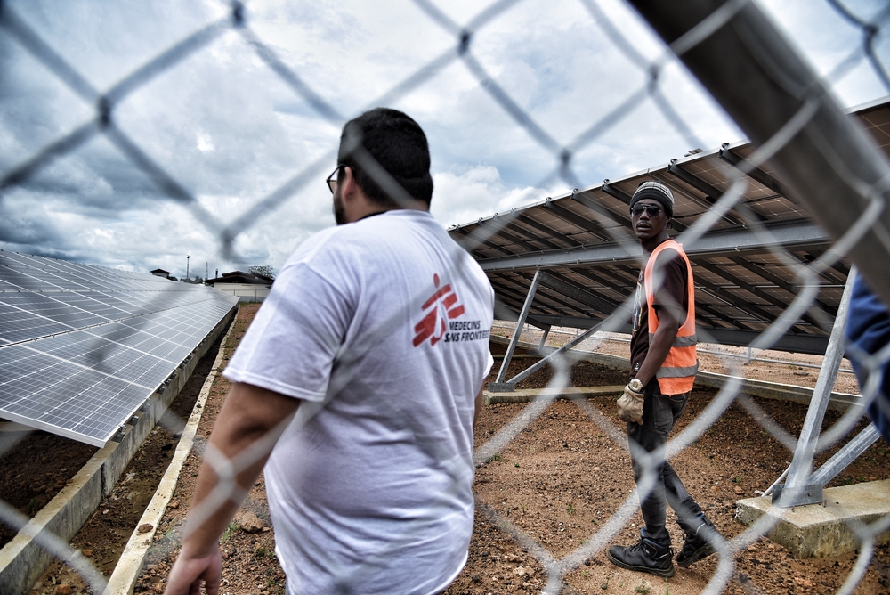 Como el distrito de Kenema todavía no está cubierto al 100% por la red eléctrica nacional, MSF gestiona el hospital utilizando un sistema eléctrico híbrido de energía solar y generadores de diésel. En el futuro, planeamos que el hospital funcione completamente con energía limpia.