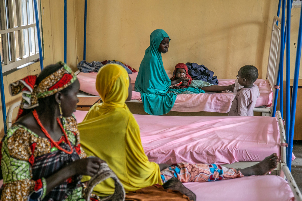 Fátima tiene 18 años y es de la localidad de Geidem, en el estado nororiental de Yobe, en Nigeria. Solo tenía 14 años cuando miembros de un grupo armado no estatal irrumpieron en su pueblo natal. Fátima fue separada de su familia y obligada a casarse. Ha pasado los últimos cuatro años viviendo a caballo entre el bosque y una aldea situada en un área que no está bajo el control del gobierno. Fátima llegó a Pulka en mayo. Ahora se encuentra en un campamento para desplazados internos, junto con su hijo de tres años, Mustafá, y su hija de 18 meses, también llamada Fátima. La niña está desnutrida y tiene diarrea y fiebre.