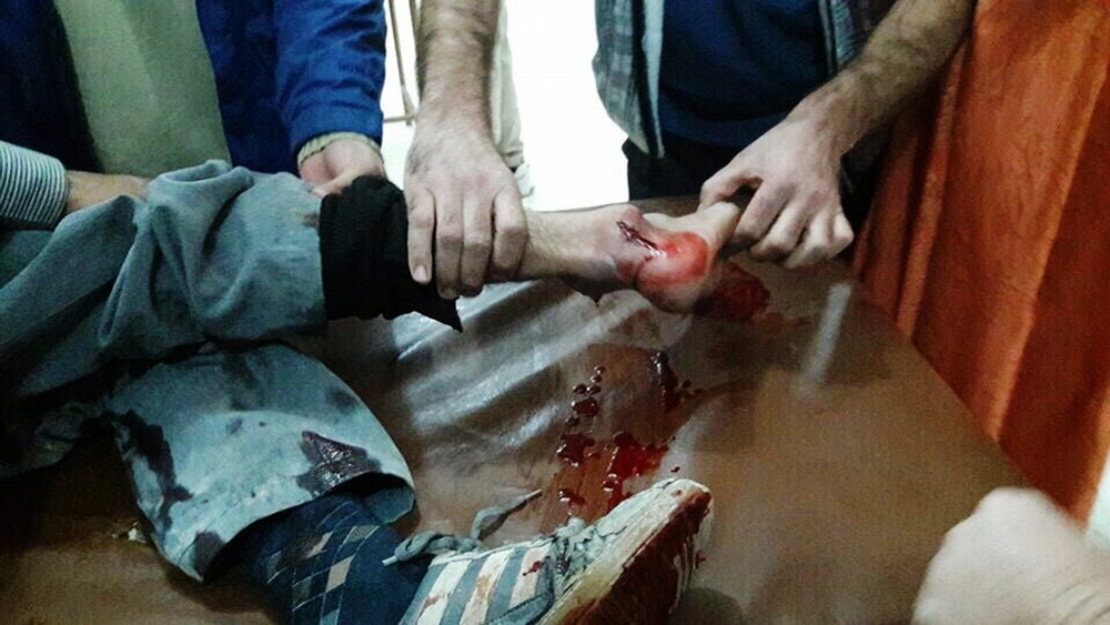 Más de 65 pacientes heridos de guerra, la mayoría de ellos heridos por bombas de barril, llegan a la sala de emergencias del hospital Ramtha en el norte de Jordania en el espacio de dos semanas.