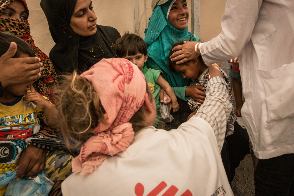 El campo de Ain Issa, al norte de Raqqa, se convierte en un campo de tránsito oficial para personas desplazadas. A medida que aumentan las llegadas al campamento, los equipos de MSF distribuyen artículos de primera necesidad como colchonetas, mantas y kits de higiene; establecen servicios de agua y saneamiento; responden a un brote de sarampión; y vacunan a los niños y niñas contra enfermedades infantiles comunes.