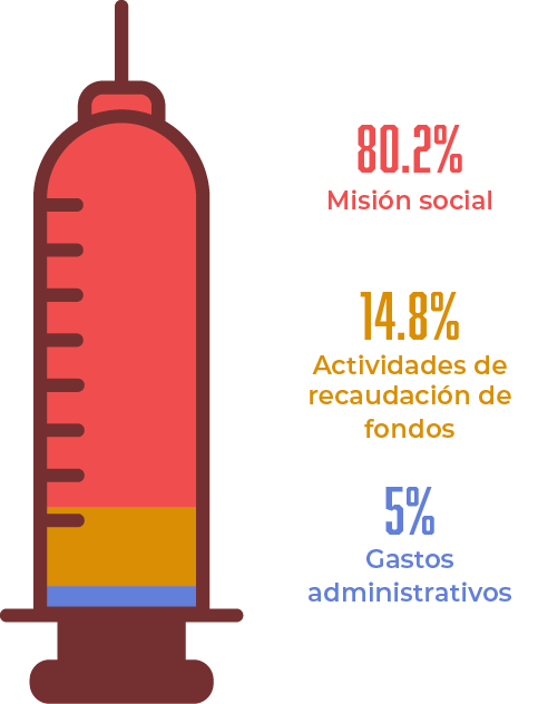 En Médicos Sin Fronteras invertimos más del 80% de los fondos que recibimos en nuestra misión social y programas de atención médica humanitaria en más de 74 países. Los proyectos de atención médica y humanitaria de nuestra organización están financiados en un 96,3% de fondos privados, provenientes de 7,3 millones de donantes individuales, empresas y fundaciones.
