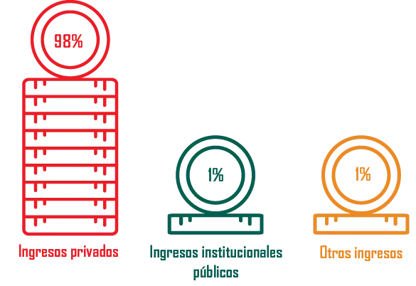 | TOTAL DE INGRESOS PRIVADOS | 2,313 | 98% |