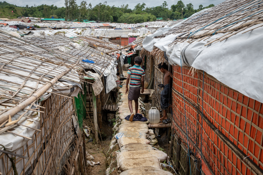 Al detenernos en el borde del campo, junto a la carretera, miro el horizonte. El campo se extiende hasta donde el ojo puede ver, y aún más allá. El número de personas que viven aquí es apabullante: más de 600,000 personas hacinadas en menos de 15 kilómetros cuadrados. El paisaje montañoso es desigual y propenso a deslaves de lodo, y todos los refugios consisten básicamente en bambú y lona. Esta área tiene una gran cantidad de lluvia en el año, lo que agrega otro elemento desafiante a la precariedad de las estructuras y viviendas.
