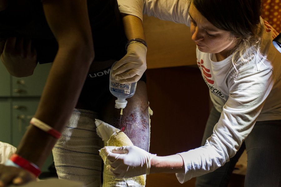 En el último año, el equipo de MSF ayudó a rescatar a 23,159 personas en su peligroso cruce marítimo desde el norte de África hacia Italia. Muchas personas que emprenden el trayecto en busca de una mejor vida en Europa lo hacen a merced de las bandas libias que controlan las redes de tráfico de personas en el mar Mediterráneo. La travesía normalmente implica botes sobrepoblados no aptos para realizar el viaje. En el 2017, 1,142 personas murieron en el mar intentando llegar a las costas de Europa.