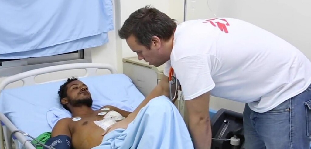 Se había fracturado gravemente la pierna y acudió a un hospital privado para ser operado. Le colocaron un fijador externo (barras de metal que entran en la pierna desde el exterior para mantener los huesos en posición) para curar la fractura, pero el joven no podía pagar para que se la quitaran.