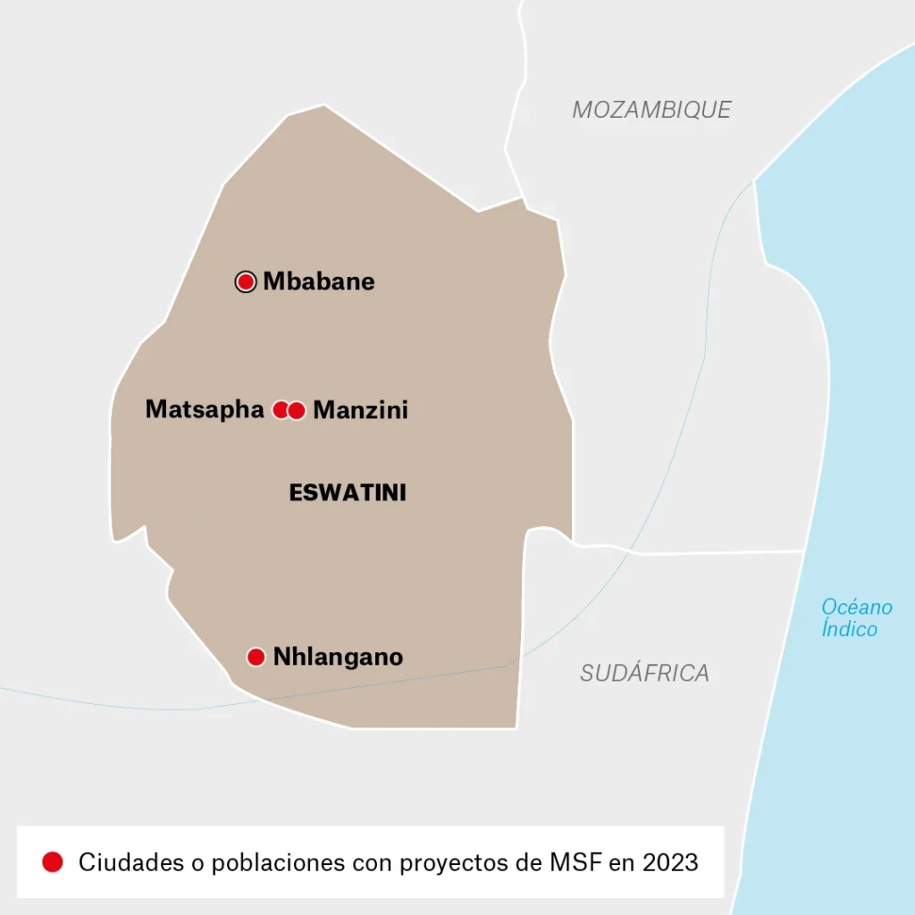 Nº de profesionales * de MSF en 2023: 90 | Gastamos 3,5 millones de € | MSF trabajamos por primera vez en Eswatini en 2007