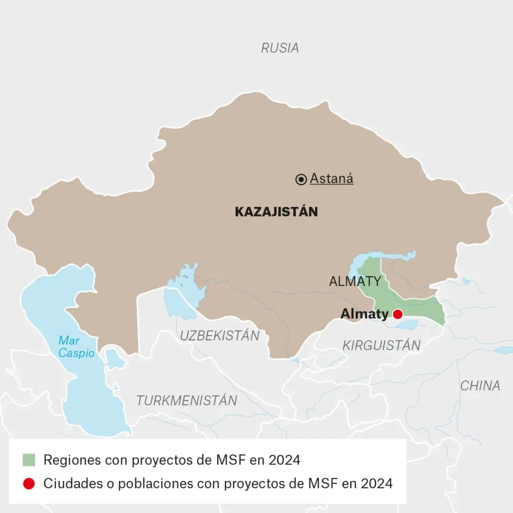 Nº de profesionales * de MSF en 2023: 6 | Gastamos 0,4 millones de € | MSF trabajamos por primera vez en Kazajistán en 1996