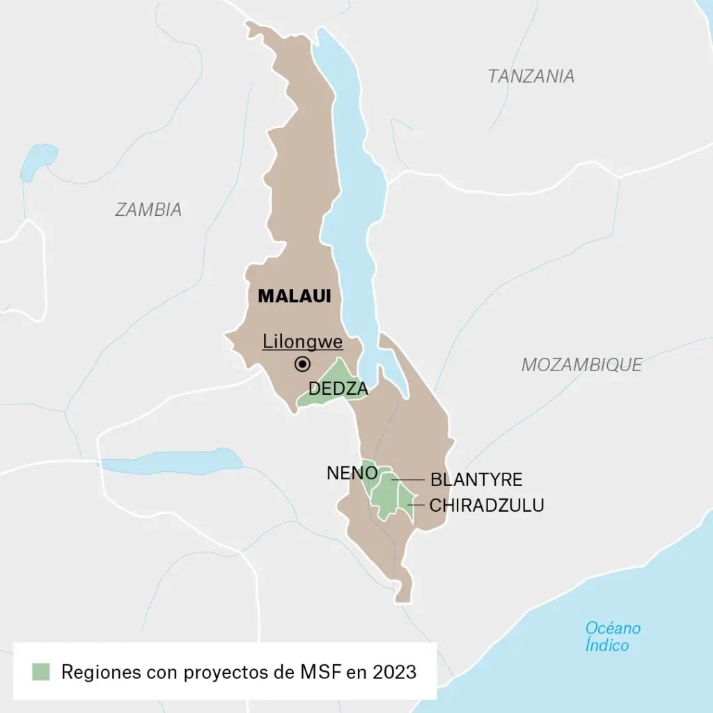 Nº de profesionales * de MSF en 2023: 307 | Gastamos 5,9 millones de € | MSF trabajamos por primera vez en Malawi en 1987