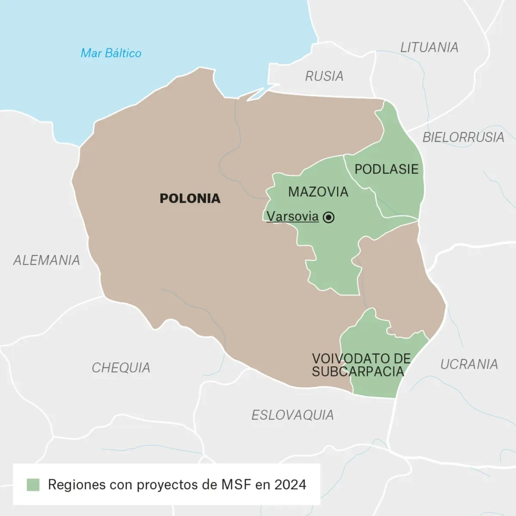 En Polonia, Médicos Sin Fronteras asistimos a personas migrantes y refugiadas varadas en la frontera con Bielorrusia, y ayudamos a personas que han huido de Ucrania para que puedan acceder a atención médica.