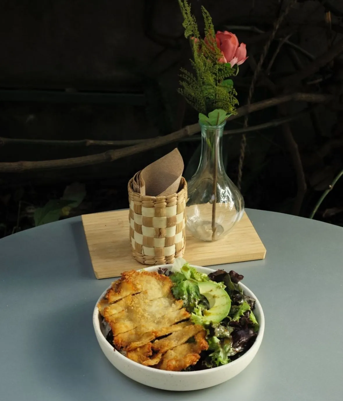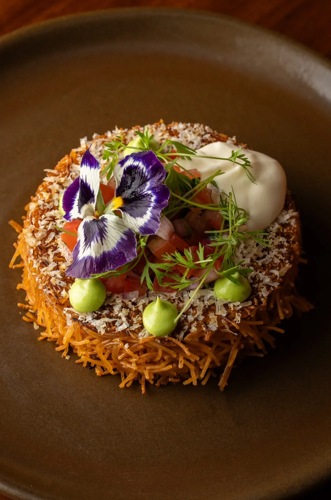 Platillo: Torta de cochinita, Enchiladas del valle, Hoja santa con chapulines y Coliflor asada.