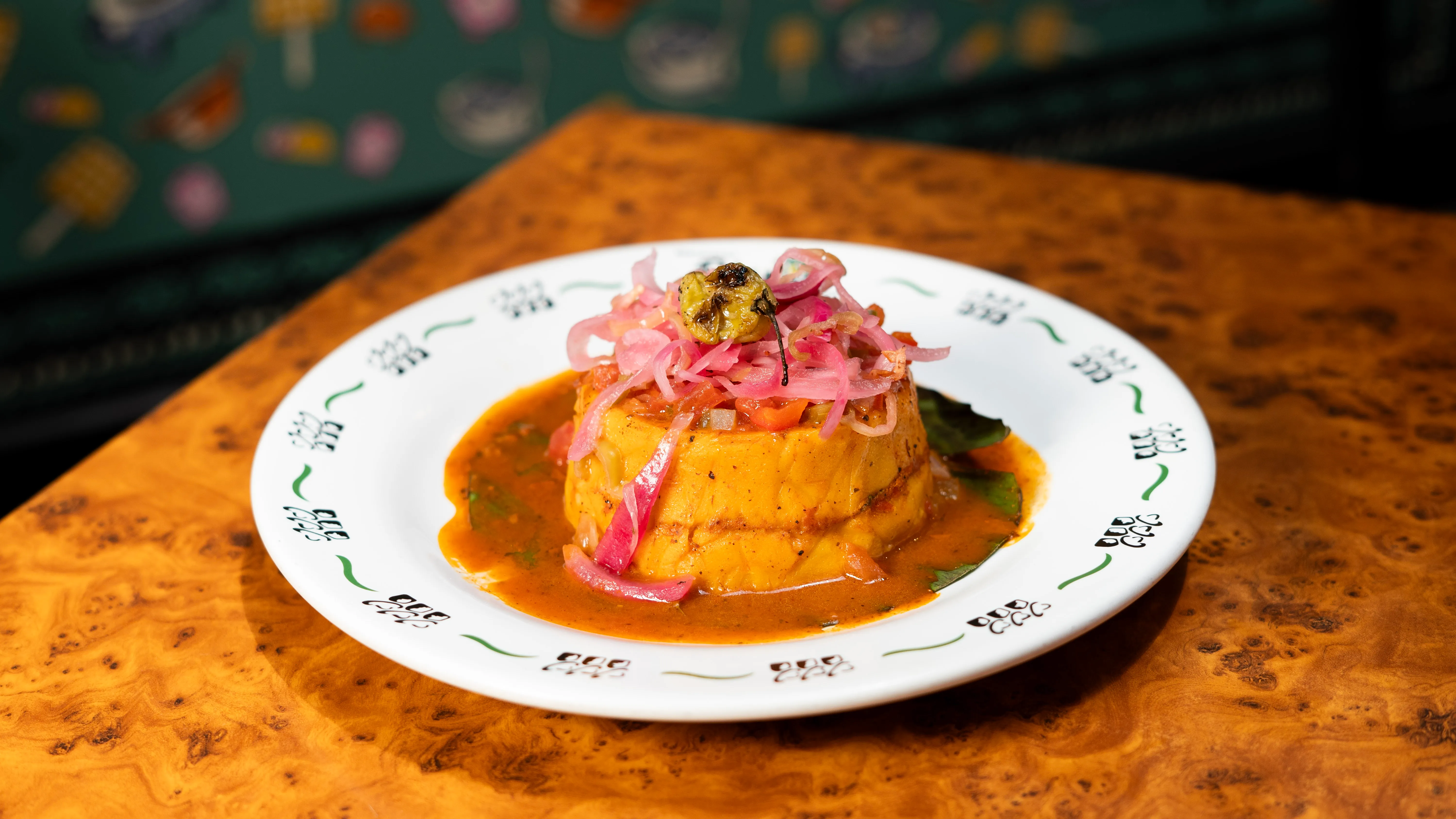 Platillo: Corundas, mole de guayaba y tamal de lengua