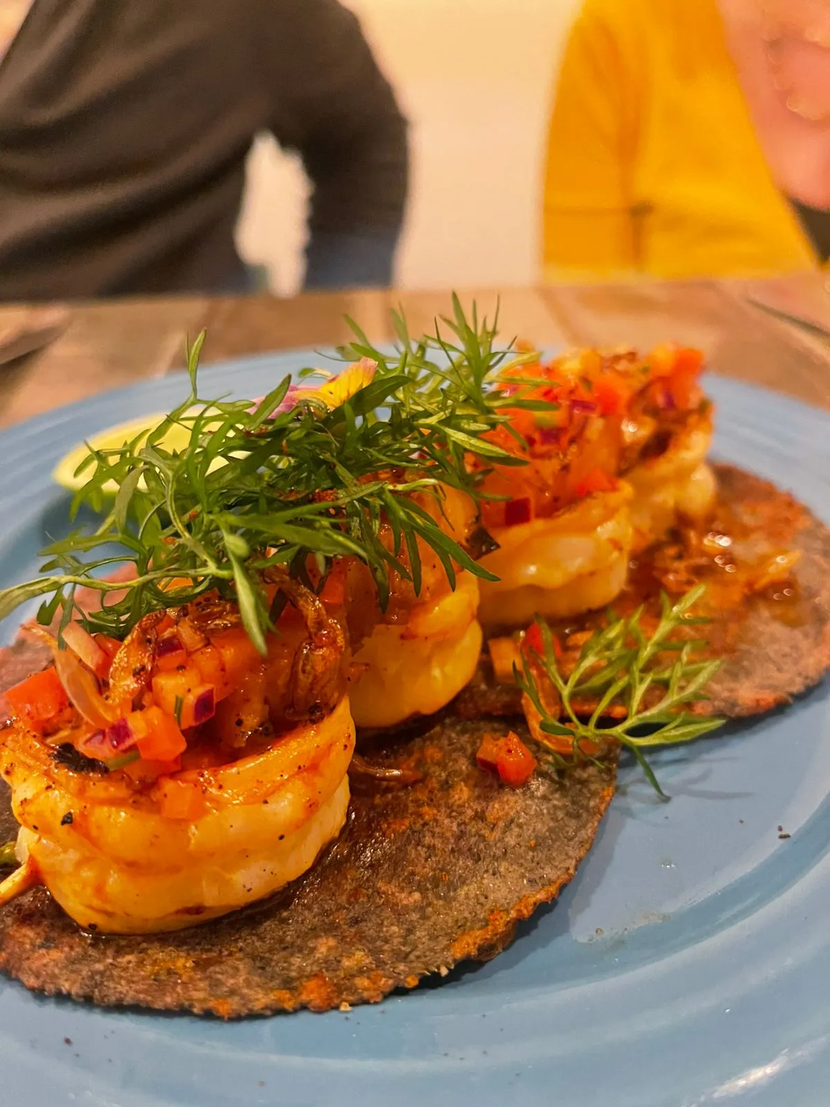 Platillo: Enchiladas Nido y Tacos de Camarón